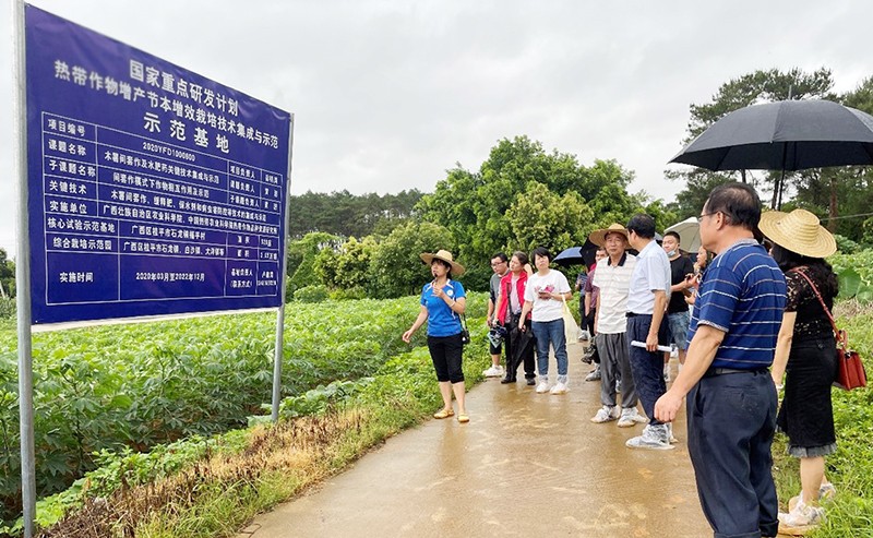 7月3日,国家重点研发计划专项“热带作物增产节本增效栽培技术集成与示范”课题“木薯间套作及水肥药关键技术集成与示范”现场查定验收会及观摩科普活动在广西桂平举办。会议由广西壮族自治区桂平市农业农村局主持,由热带作物品种资源研究所最新邀请云南农业大学朱有勇、贵州大学宋宝安、北京农林科学院赵春江等院士及相关专家,于石龙镇福平村对木薯核心试验示范基地、综合栽培示范园进行现场查定验收。