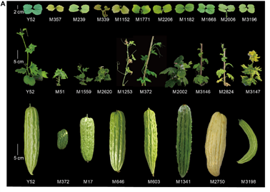 图2 苦瓜Y52 EMS突变体库的表型与突变体M2750的表型鉴定及MutMap分析